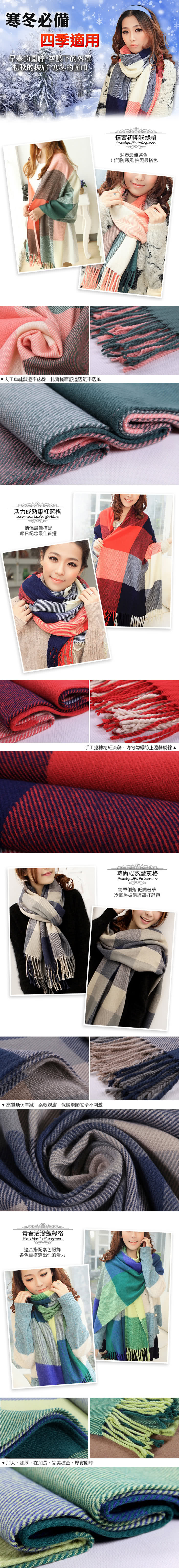 【幸福揚邑】羊絨質感格紋保暖圍巾-披肩(藍綠格)穿搭文